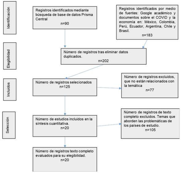 PRISMA, la búsqueda fue realizada en plataformas como Redalyc, Scielo, y