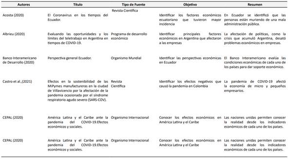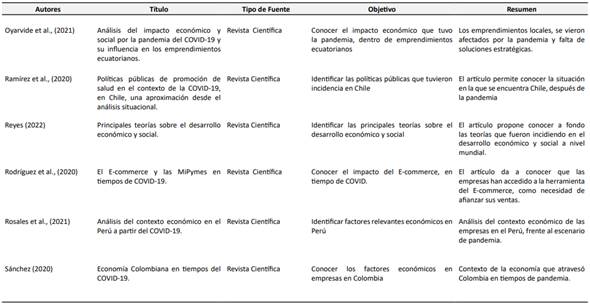 Key words: COVID-19; Development; Business; Economic impact; Indicators; Latin