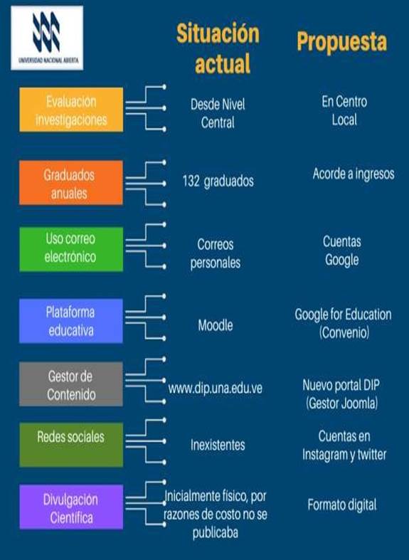 En cuanto a la situación actual de la DIP- UNA, algunos de los fundamentos esenciales para el diagnóstico descriptivo se centraron en la situación previa a las mejoras realizadas: