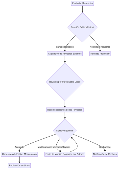Una vez aceptado el manuscrito, este pasa a la fase de edición de estilo, revisión de formato, corrección tipográfica, maquetación y publicación digital. Los autores reciben la prueba final para revisión antes de su publicación oficial en el número correspondiente de la revista.